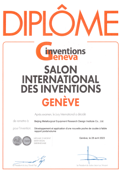 5月6日,中冶设备总院“新型低重量容积比钢包的研制与应用”研发成果荣获“2023年第48届日内瓦国际发明展”银奖。