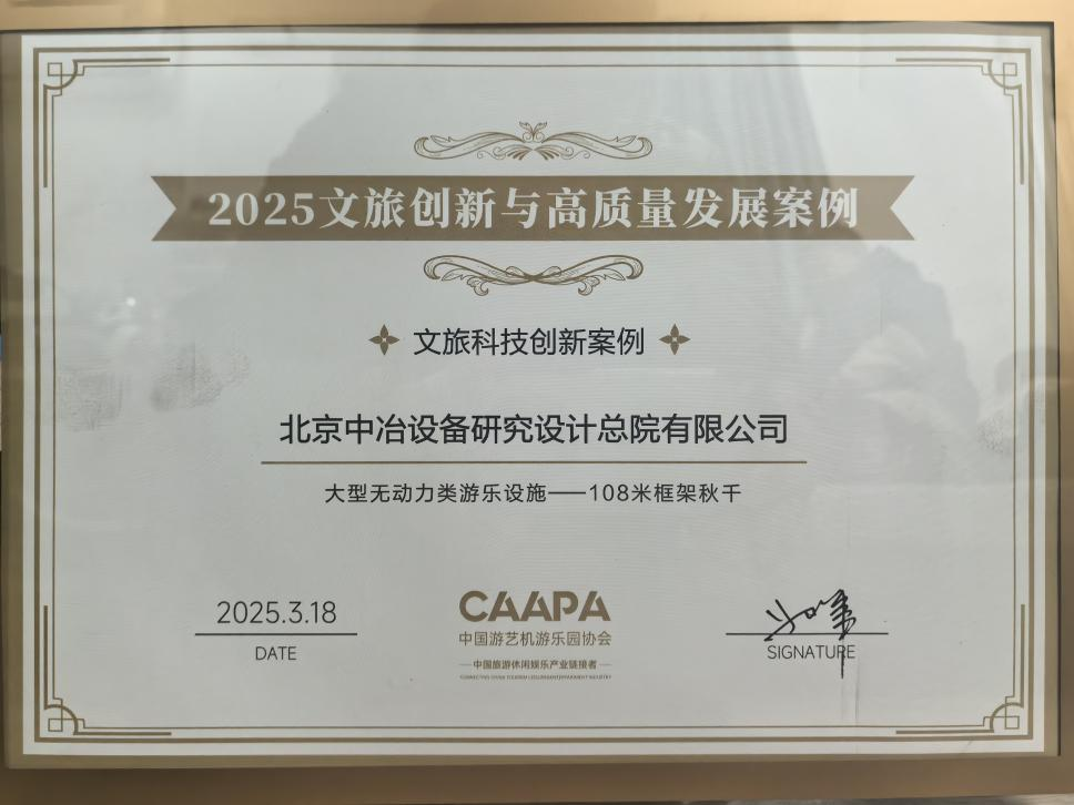 3月18日,中国游艺机游乐园协会发布“文旅创新与高质量发展案例”评选结果,由中冶设备院自主研发的“108米框架秋千(云端彩虹秋千)”凭借突破性技术成果成功入选。